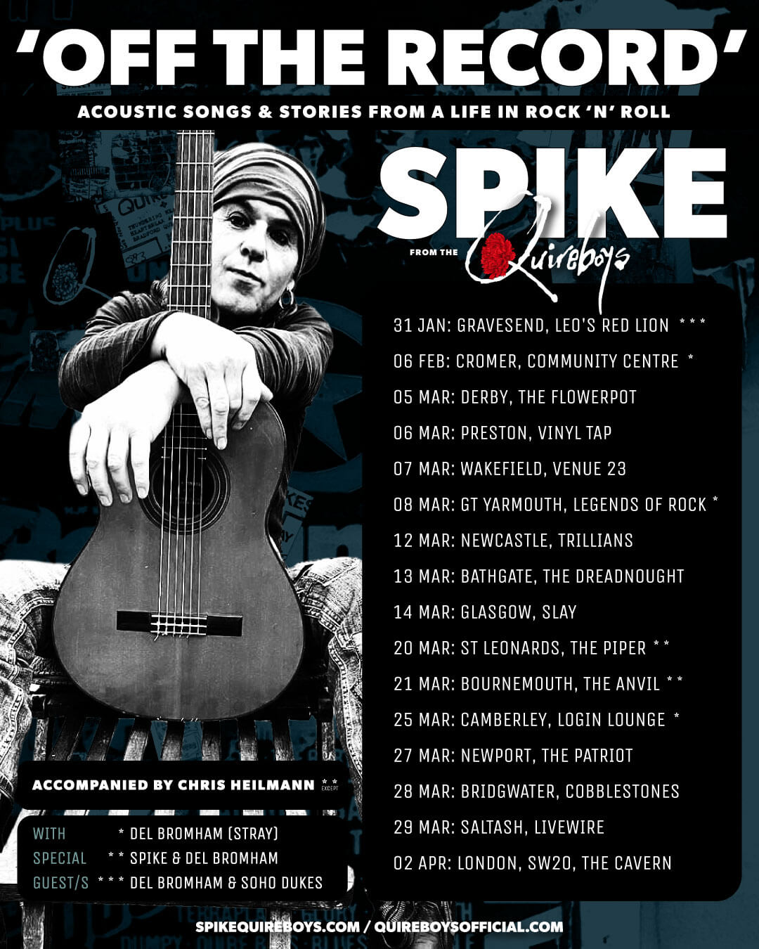 Tickets for Spike's acoustic songs & stories 'Off the Record' tour are onsale now
